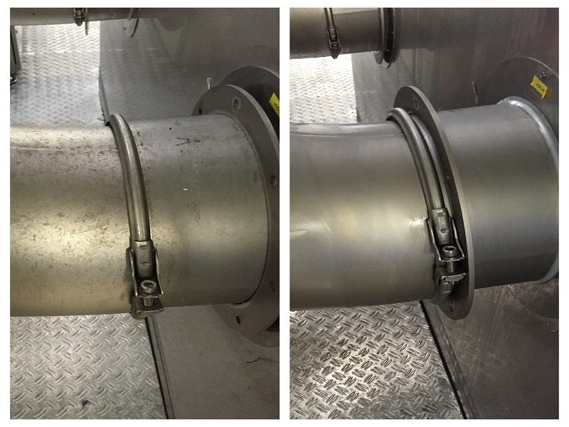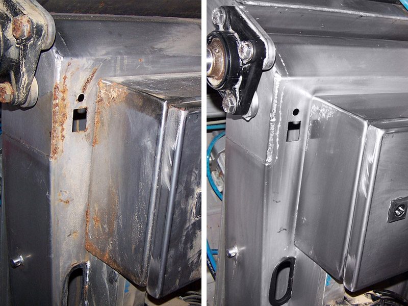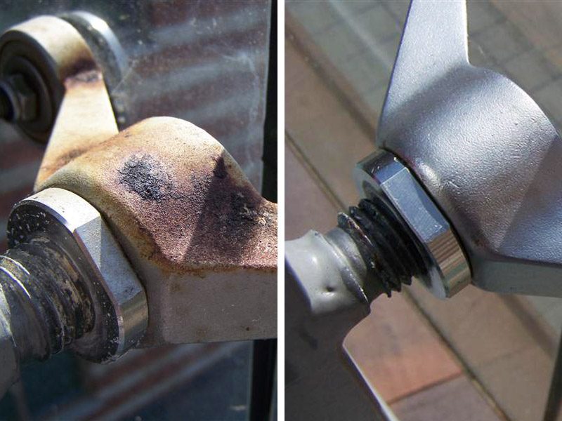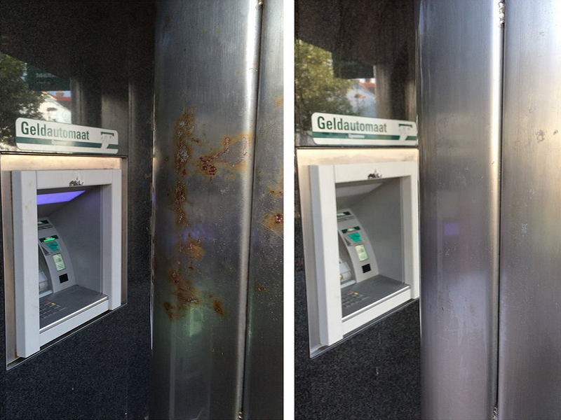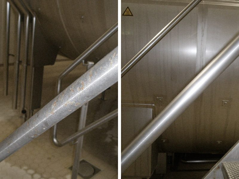 Hier treft u een aantal foto’s aan van aangetaste oppervlakken die behandeld zijn met Innoshine B570 ®. Ook krijgt men een indruk hoe het oppervlak is aangetast door een te zware corrosieve belasting en hoe men de ontstane situatie alsnog kan reconditioneren. Roest verwijderen en rvs onderhoud in de praktijk!
